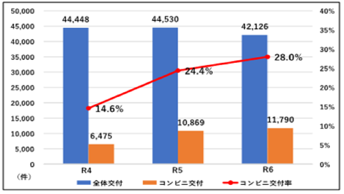 各種証明書のコンビニ交付率については、令和4年度からの3年間で約2倍に増加しています。今後もさらなるコンビニ交付率の増加が見込まれます。