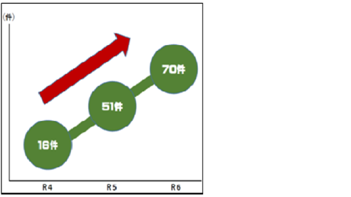 業務のオンライン化実施状況については、令和4年度からの3年間で4倍以上に増加しています。今後もさらなるオンライン化を推進します。