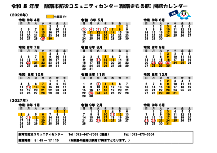 令和8年度の開館カレンダーはこちらから (PDFファイル: 55.4KB)