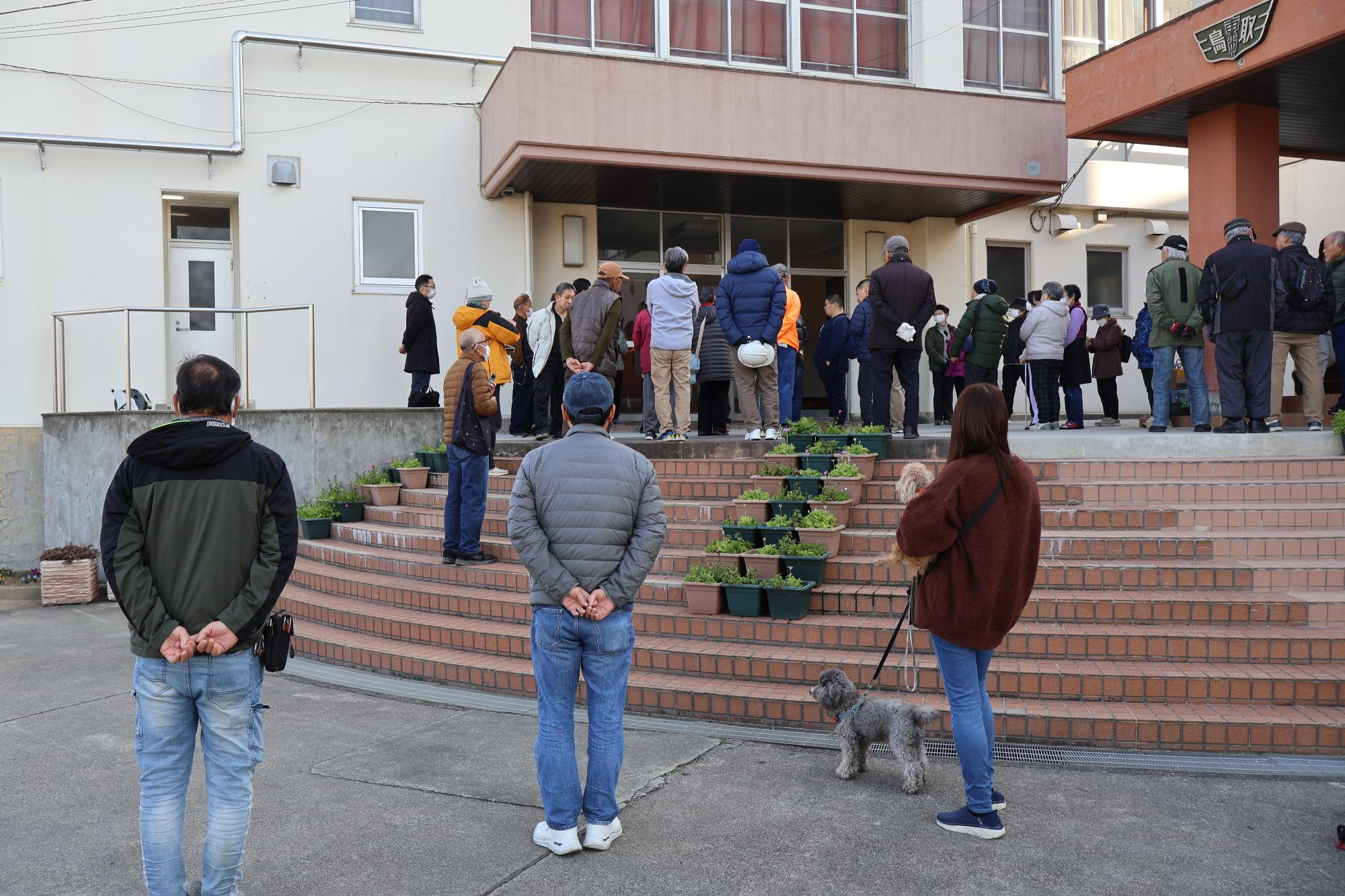 鳥取東中学校では阪南市で初めてペットの受け入れ訓練を行います。