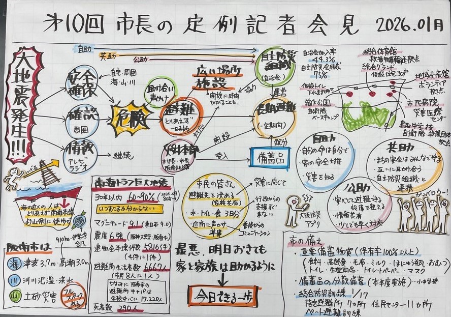 市長定例記者会見(1月) 令和8年1月20日火曜日に実施しました市長定例記者会見の資料及び映像を公開しています。 記者会見(動画配信) この記事に関するお問い合わせ先 総務部 秘書人事課 秘書担当〒599-0292大阪府阪南市尾崎町35-1電話:072-489-4502Eメール:hisyo@city.hannan.lg.jp