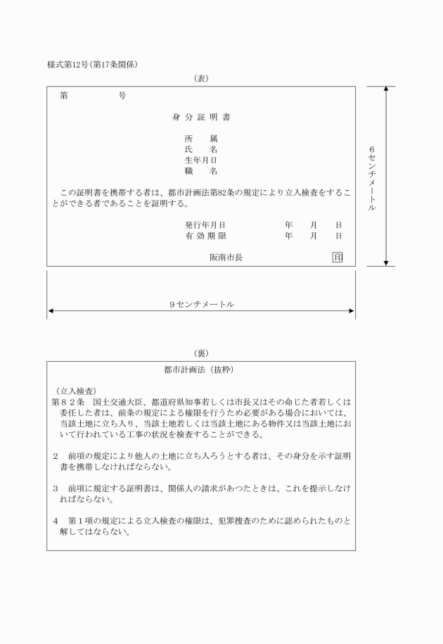 第17条 法第82条第2項の証明書の様式は、身分証明書(様式第12号)とする。